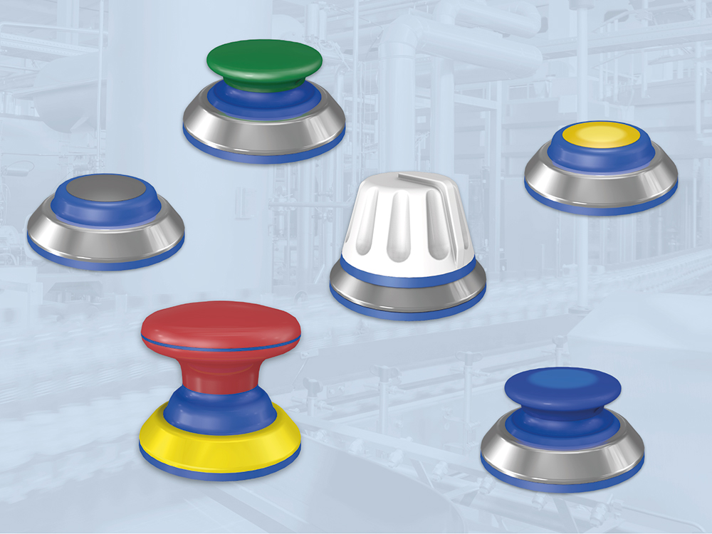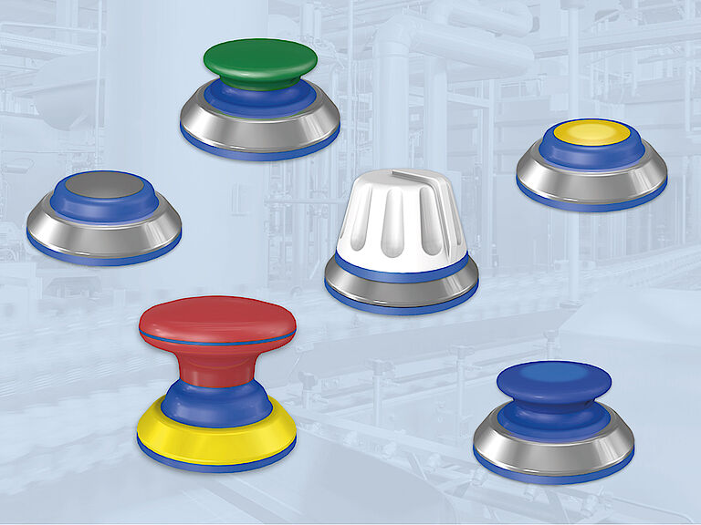 In the new H series, various types of switchgear are available in hygienic design: Pushbuttons, indicator lights, selector switches, main switches and emergency stop devices.