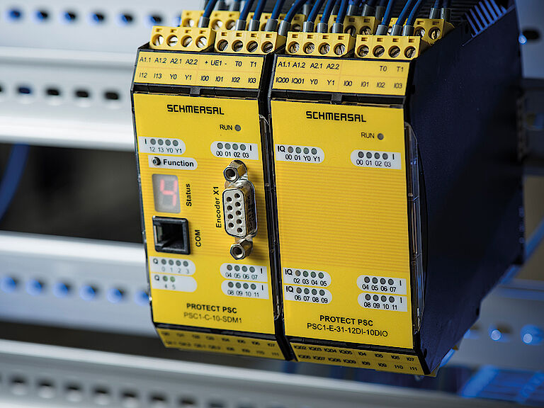 The PROTECT PSC1 programmable safety controller consists of freely programmable compact safety controllers and I/O extension modules.