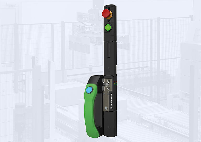 The BDF20 can either be used as a stand-alone solution or combined with the AZM40 solenoid interlock and the DHS door handle to form a solenoid interlock system. Thanks to its compact design and flexible installation, the BDF20 is also suitable for door systems with double acknowledgement: a door interlock system with BDF20 or BDF40 as well as AZM40 and DHS is installed on the outside, while a BDF20 with emergency stop and illuminated pushbutton is installed on the inside.