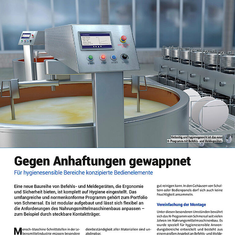 A new series of command and signalling devices that offer both ergonomicsand safety is designed specifically with hygiene in mind. The extensive and standards-compliant series is now part of Schmersal’s range of products. These command and signalling devices are modular in construction and can be adapted with flexibility to the requirements of food-processing machine engineering – such as with plug-in contact carriers