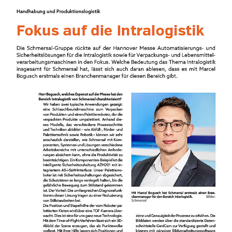 Interview with Marcel Bogusch, Industry Manager for intralogistics, Schmersal Group